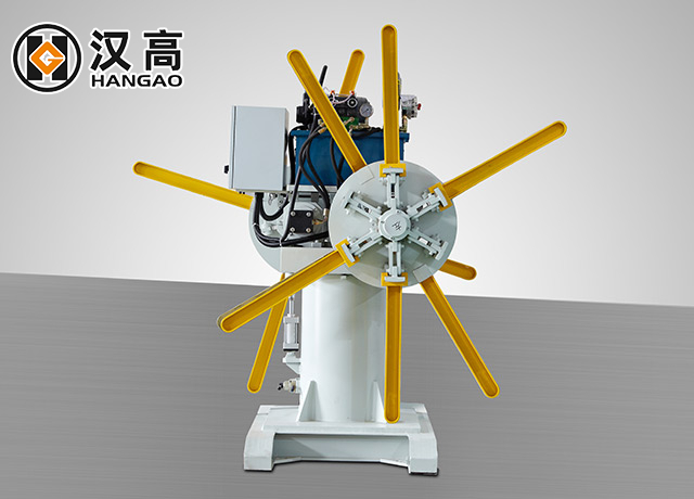 結構:雙軸膨脹和收縮拆卸機,芯軸由4塊Qieer塊組成,通過螺丝杆膨脹和收縮芯軸,線圈的內徑擴展和擰緊,並且飼餵速度由電鎖控制。在線生產一卷,準備一捲捲以連續生產